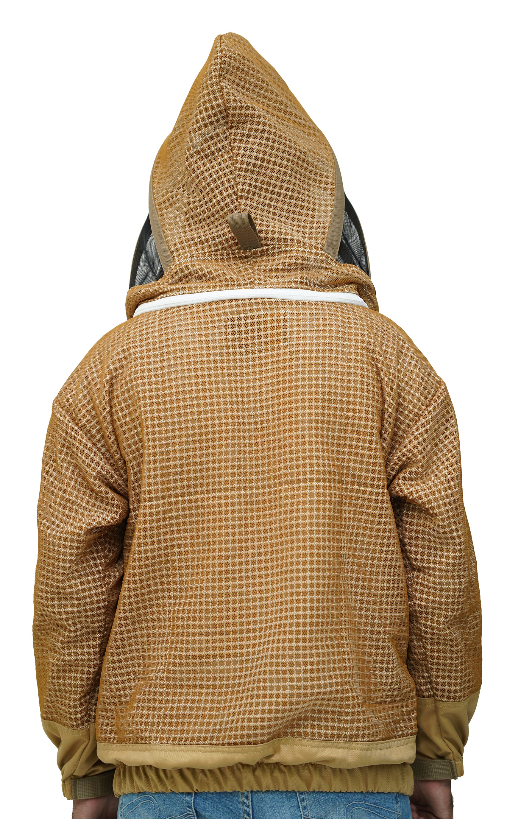 Reinforced inner mesh that works alongside the outer layer to block stings and maintain a solid protective barrier during active beekeeping.