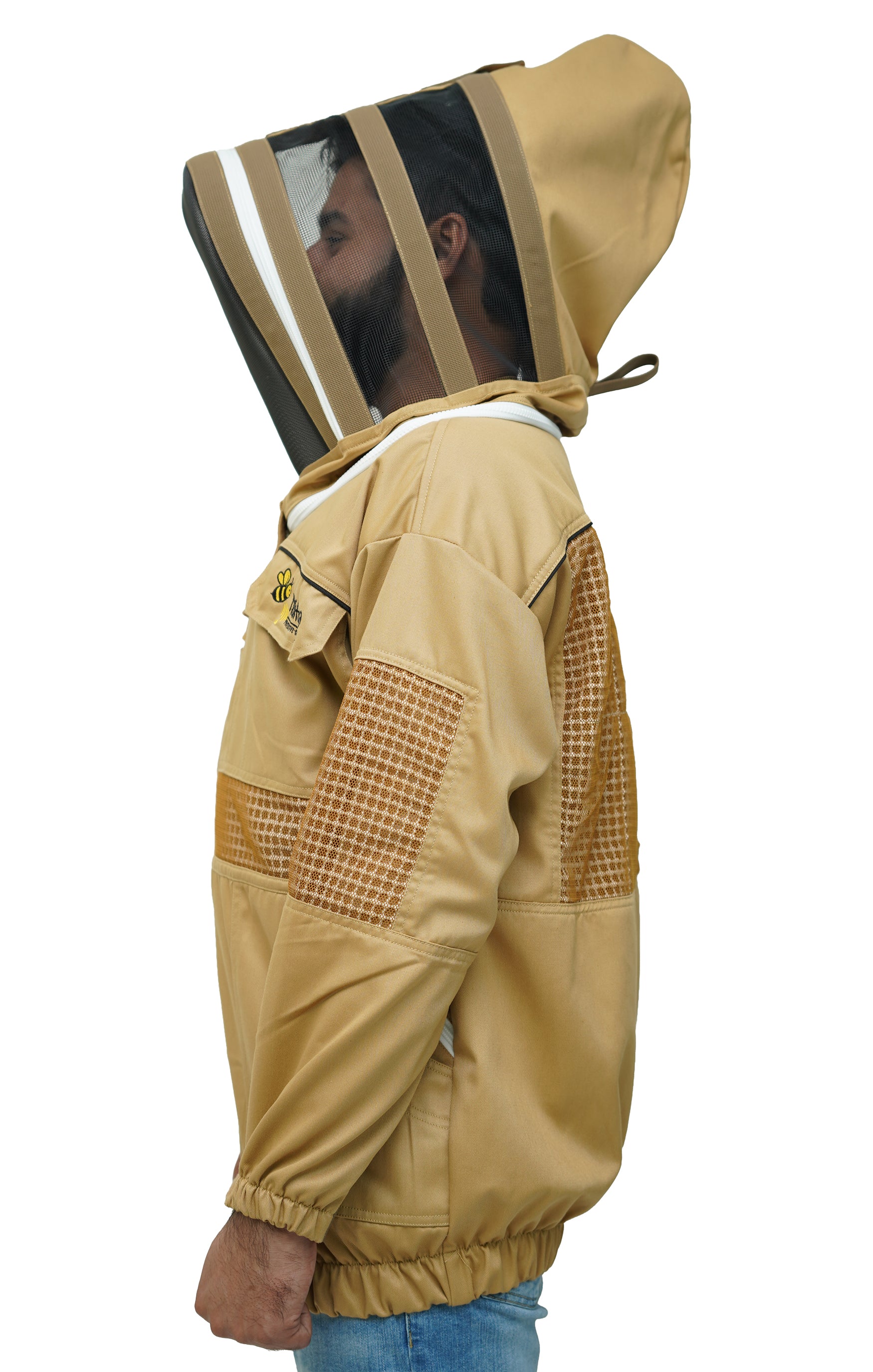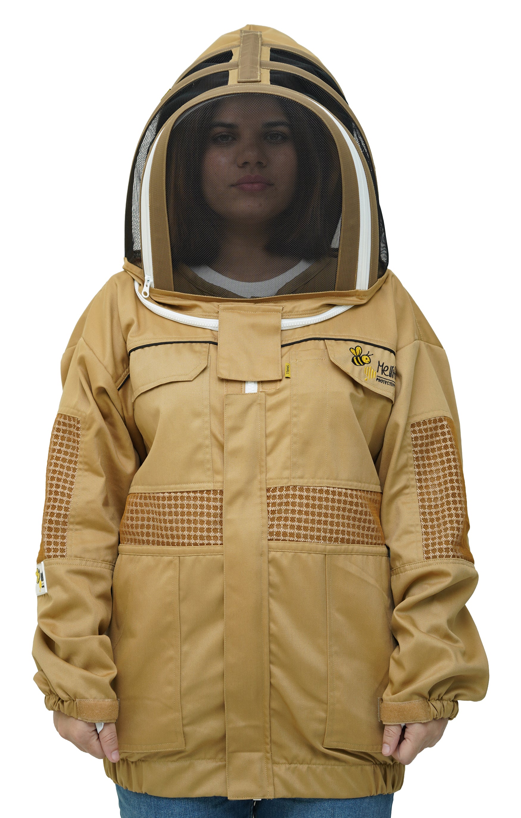 Khaki Poly-Cotton Semi-Ventilated Beekeeping Jacket With Dual Veils, Gloves
