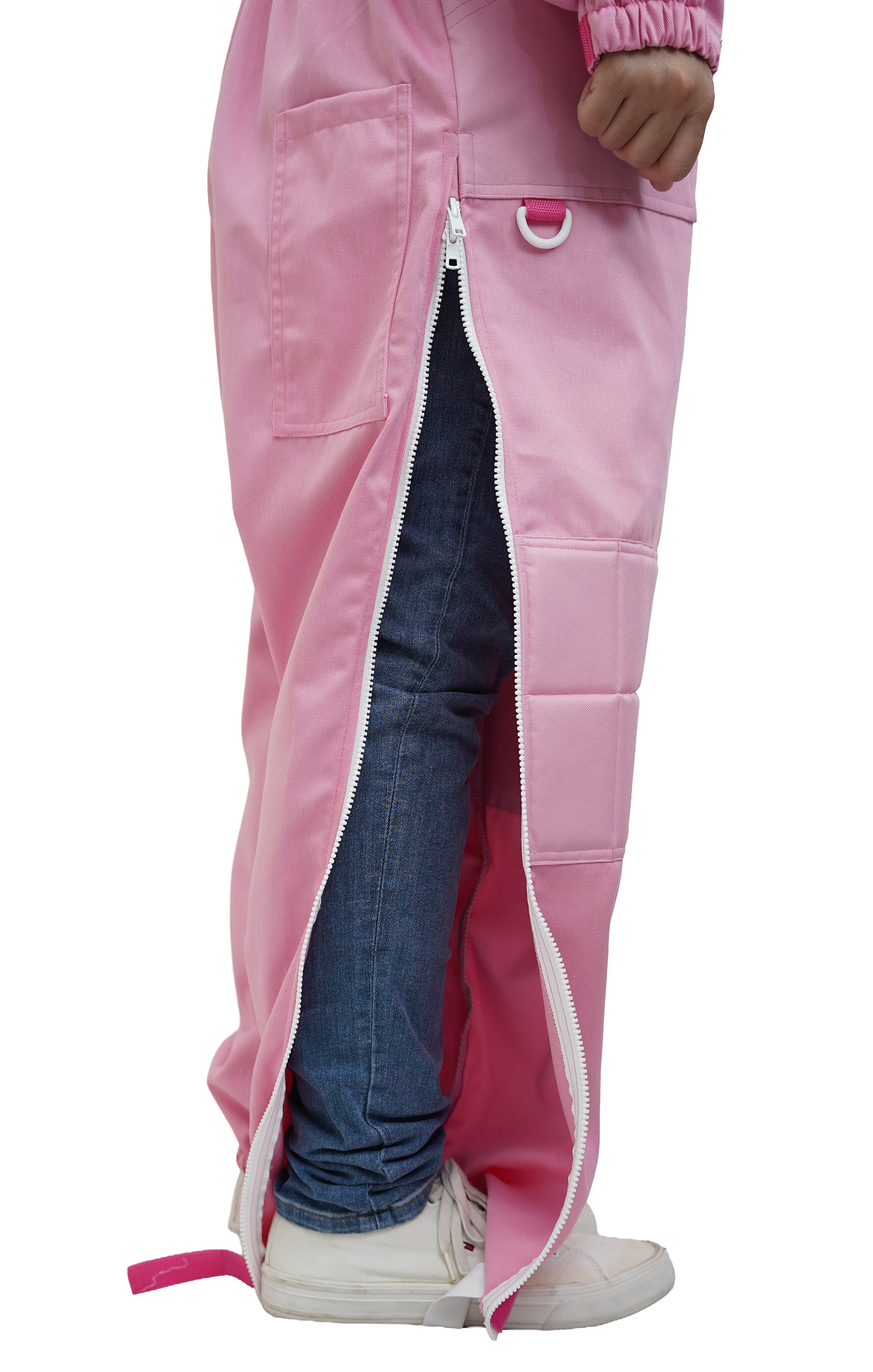 With its relaxed yet practical fit, this suit can easily be worn over regular clothing for maximum comfort. Elastic cuffs, secure closures, and durable construction help form a fully enclosed protective barrier; its pink hue adds visibility in outdoor environments while simultaneously giving it a clean, professional appearance.